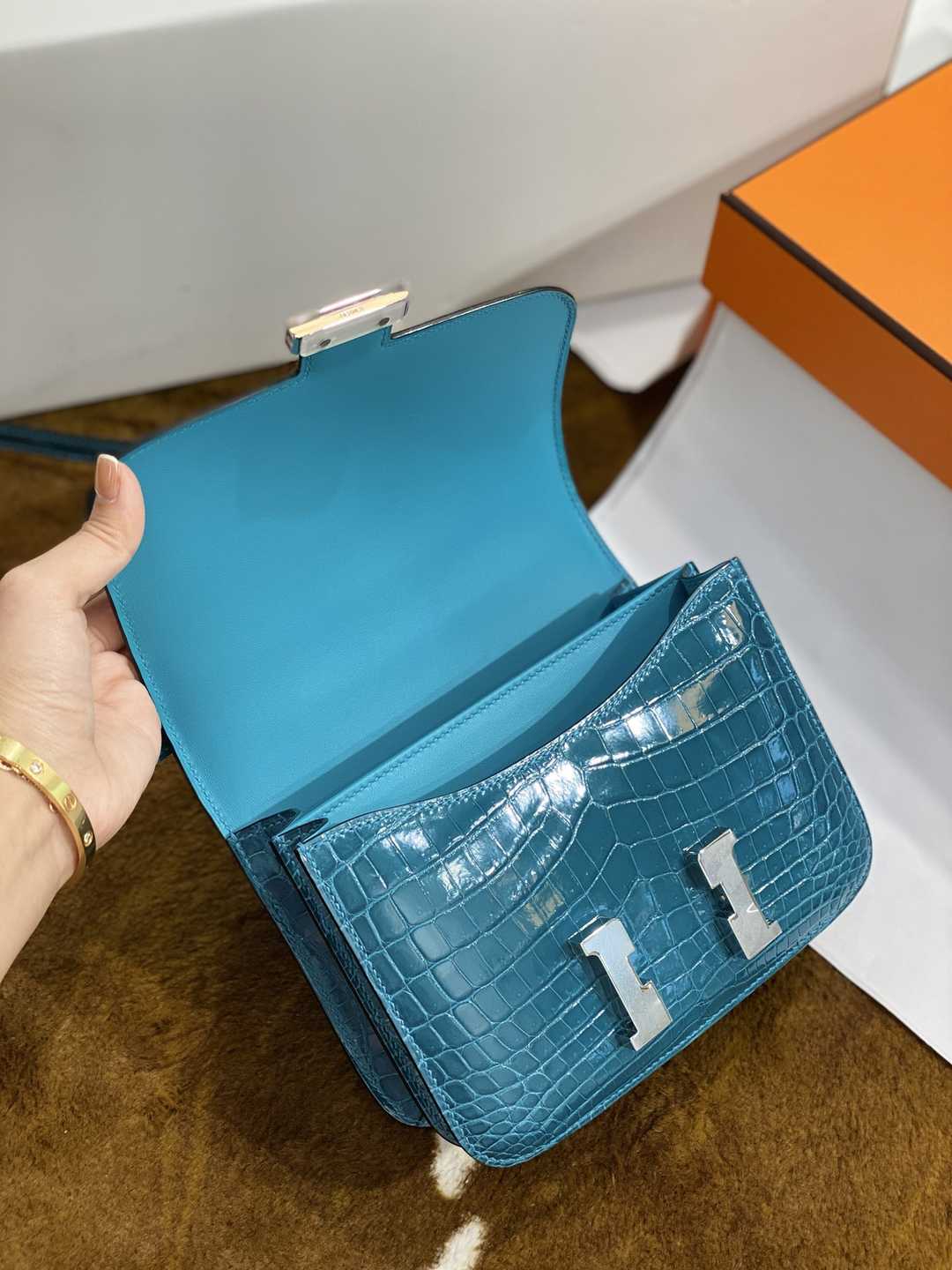 Hermes Constance 19 shiny Niloticus Crocodile U8 Bronze Dore GHW